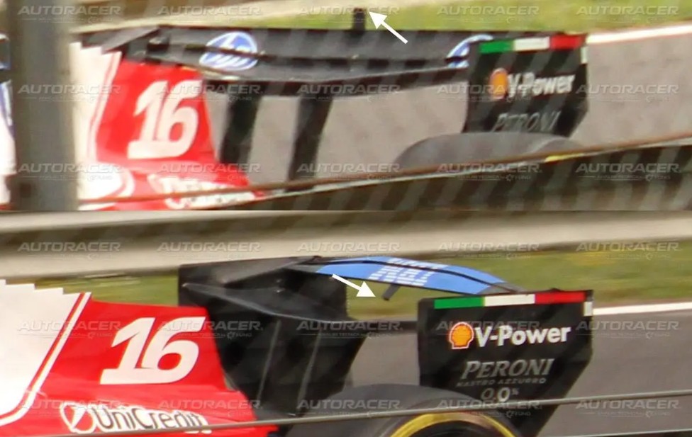 U Monzi je jasno vidljivo da je krilo dodatno evoluiralo. Jedna od najvažnijih promjena odnosi se na nosače, koji su sada znatno više nagnuti u odnosu na standardna rješenja. Ova promjena ukazuje na drugačiju raspodjelu opterećenja u trenutku kada se pokretni dio krila aktivira, što direktno utiče na stabilnost zadnjeg dijela bolida.