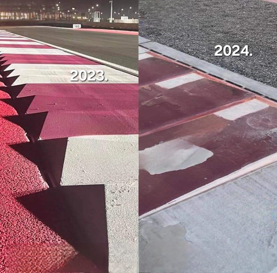Sedam od 16 zavoja na stazi u Kataru sada imaju nove profile rubnika nakon što su promjene uvedene uoči utrke 2023. godine uzrokovale oštećenja koja su natjerala FIA-u da uvede ograničenja maksimalne dužine stinta tokom utrke.
